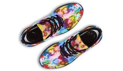 These custom printed sneakers deliver exceptional comfort through premium construction and thoughtful engineering. The breathable mesh upper ensures optimal ventilation, while the cushioned EVA insole provides reliable arch support for all-day wear. Accommodating wider feet with accurate sizing, the removable insole allows for personalized fit adjustments. Crafted entirely from 100% vegan materials, they combine ethical sourcing with durability. The vibrant floral design showcases superior color reproduction and print precision, creating a distinctive aesthetic. Lightweight yet robust, these shoes are individually customized to match your preferences, making them an ideal choice for everyday activities.